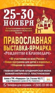 Программа мероприятий православной выставки—ярмарки «Рождество в Краснодаре» 25-30 ноября 2025 года